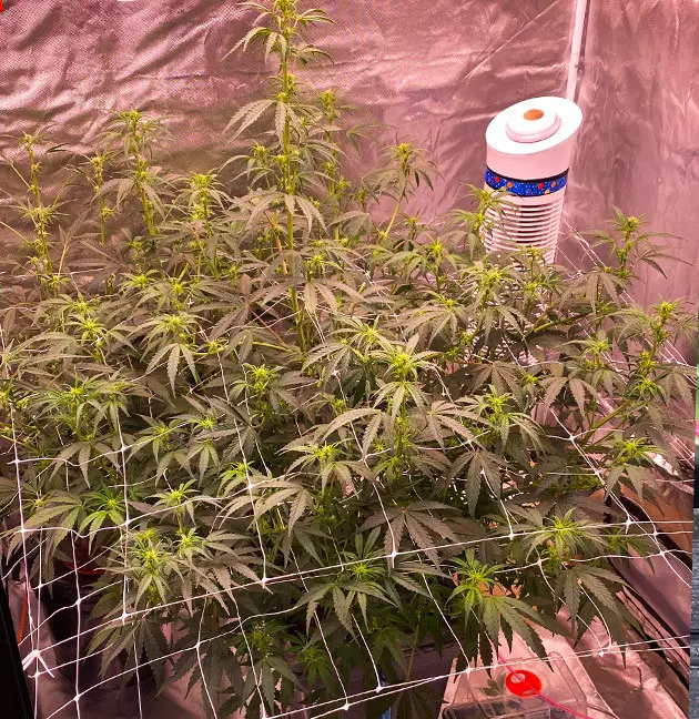Of course, I also changed the nutrients to formulas that are rich in phosphorus and potassium and rather low in nitrogen. Moreover, I installed a ScrOG net – not so much to train the canopy as to provide support for side branches at the later stages of flowering. The buds indeed would become so big as to strain the branches to the point of breaking them, so the ScrOG was very useful. As for the central colas (there were a few), I probably should’ve put them under the net somehow because they would grow very tall – up to 130-140cm.