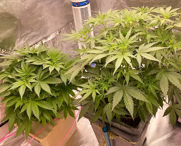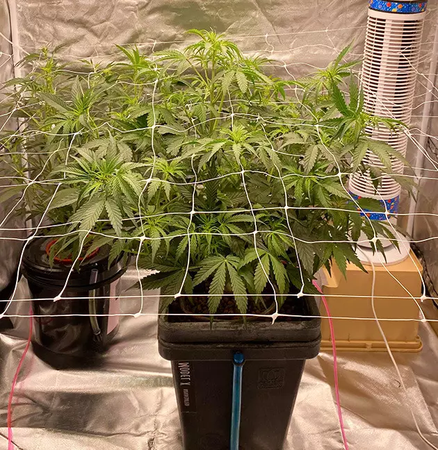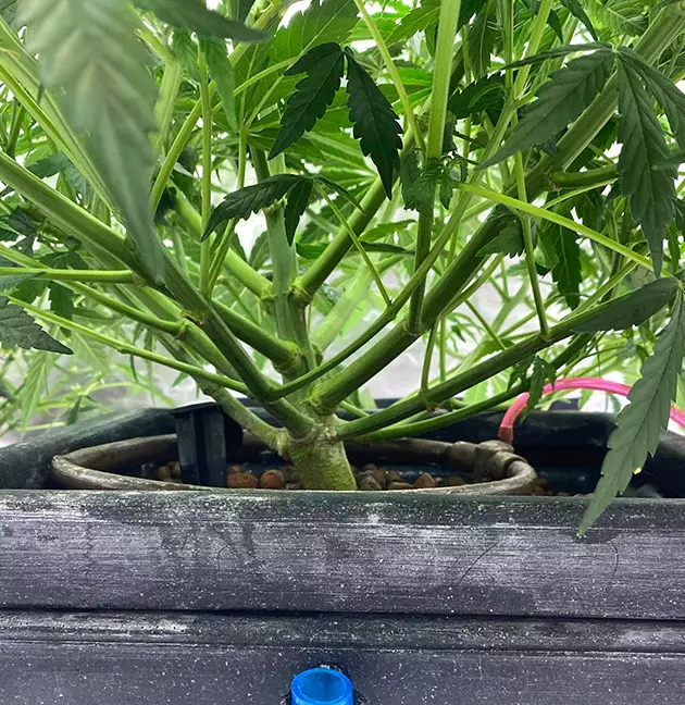 My Gorilla Cookies Auto was insanely leafy and branchy. It would be a hassle to reach under all that foliage to hand-water her, but, as I said, she was getting her food and drink from the automatic drip system. I won’t bore you with the exact details of feeding her. You all probably know that cannabis needs a nitrogen-rich diet in veg – with much less phosphorus and potassium – as well as all the micronutrients, of course. For that, I was giving her GHE FloraNova Grow and Flora Micro.