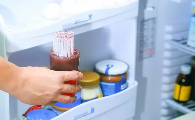 - Place your glass into the freezer and place something on top of the straws to stop them from lifting.