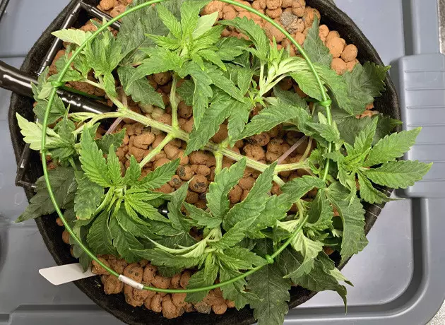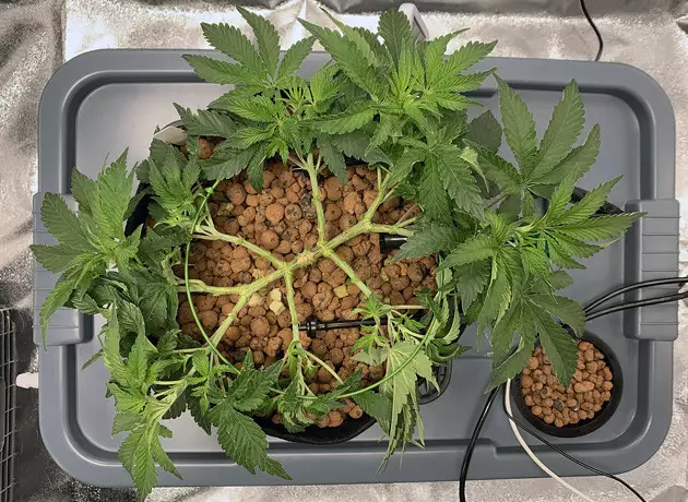 I started week 10 with some plant management to reign in my plant’s rampant growth during the vegetative cycle. I mainlined the plants, creating eight main stems that would all become colas later down the road. I also removed all growth from the bottom half of my plant to help it focus its energy on the mainline colas.