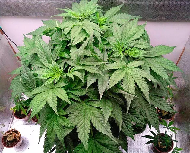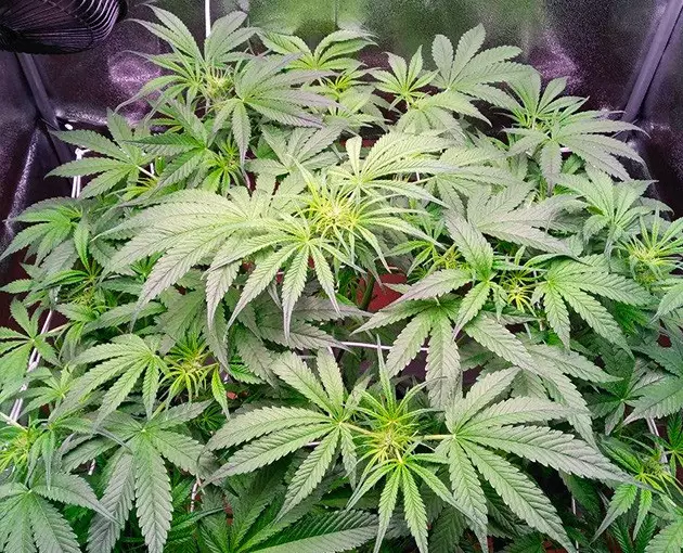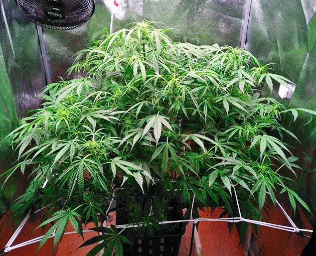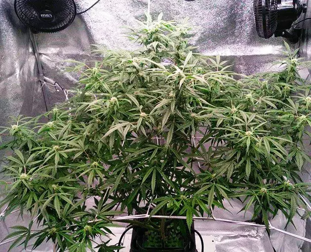 By week 6, when she revealed her sex and was about to transition to flowering, my Orange Bud Auto looked like a huge green ball of foliage. Some of the fan leaves were as big as my hand, and the first thing that I did when the flowering started was a thorough haircut, which revealed countless primary and secondary branches.