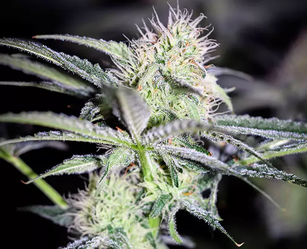 Around 3 or 4 weeks into flowering, even before the stretch was over, a great number of trichomes began to form on calyxes and trim leaves, while the ladies started to give off a strong, fruity smell. The Incredible Bulk weed is one of the most resinous strains in my experience, and even fan leaves were generously frosted all over. This ‘frost’ looked really stunning against the dark green of the leaves.