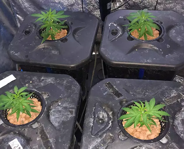At the exact time that I swapped the light, I also moved my clones into a bigger (and final) DWC system that consisted of four 10-liter buckets. At this point, the roots were already a foot long.