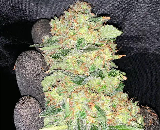 With their great calyx-to-leaf ratio, The Incredible Bulk is very easy to trim, but it was still a taxing job. I had more than 50 colas from my four plants, and they yielded more than 24 ounces (686 grams) of dry bud altogether! That was with just 1 square meter and 421 watts of light.