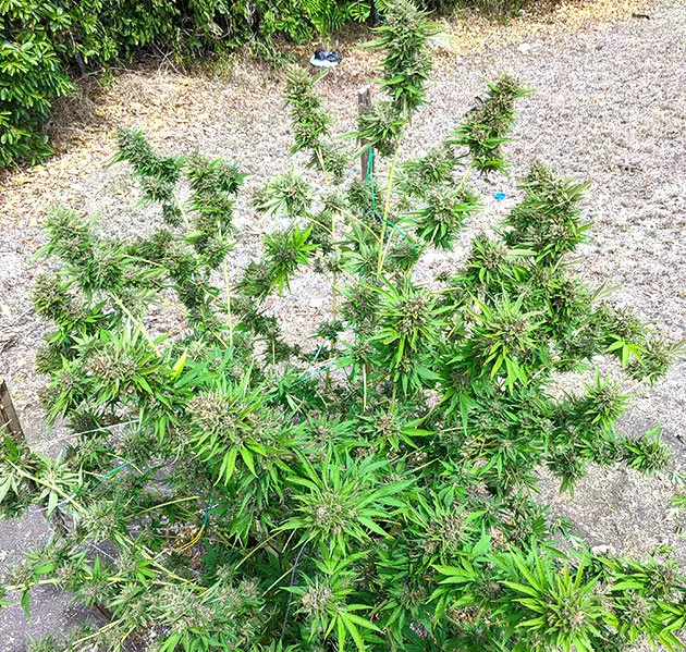 Two weeks before the harvest, the branches were already about to snap under the strain of all those heavy colas. I had to tie the weaker branches to the stronger ones as a kind of makeshift support, but they kept on sagging until the whole thing finally capsized.