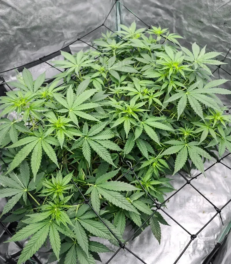 Expect abundant harvests of thick, chunky buds with a high calyx-to-leaf ratio. Apollo performs exceptionally well in both SCROG and SOG setups, thriving under strong light. Once cured, the buds retain their aroma and density beautifully without excess leaf material.