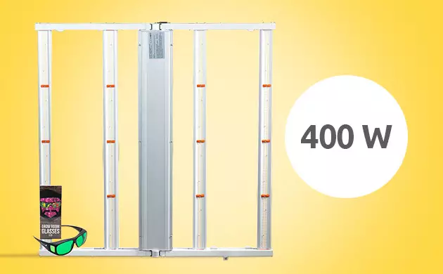 A grow room that includes one 400W LED lamp, two 40W oscillating fans (running 24/7), and a 120W exhaust system.