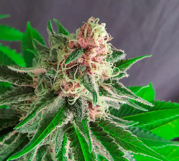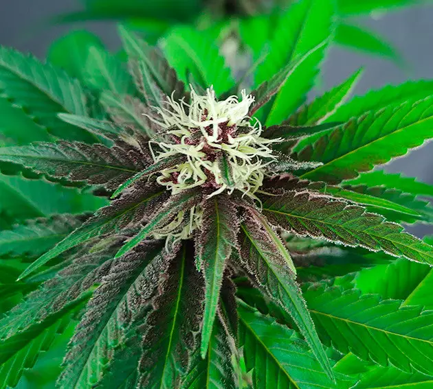 I didn’t expect this to be a purple strain. But it was. The buds were shining with intensely white pistils, and the surrounding leaves were deep purple. The smell was lovely too—just like what you’d expect from a plant with such colors.