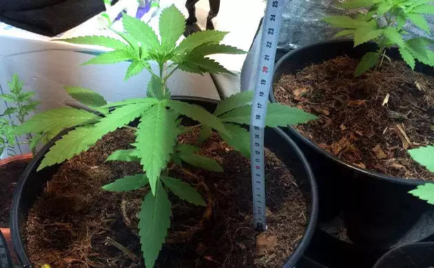 I had a spare 9l (2.38 gal) pot with a broken rim, so I filled it with CocoStar and planted one Grandaddy Purple seed, already germinated. The bean was 8 hours behind the other two—Mazar and Hindu Kush—but this seedling soon caught up with the rest and became the biggest one.