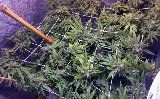 I managed to spread most flowering tops along the mesh, but a few colas nearest to the pot grew way above the canopy.