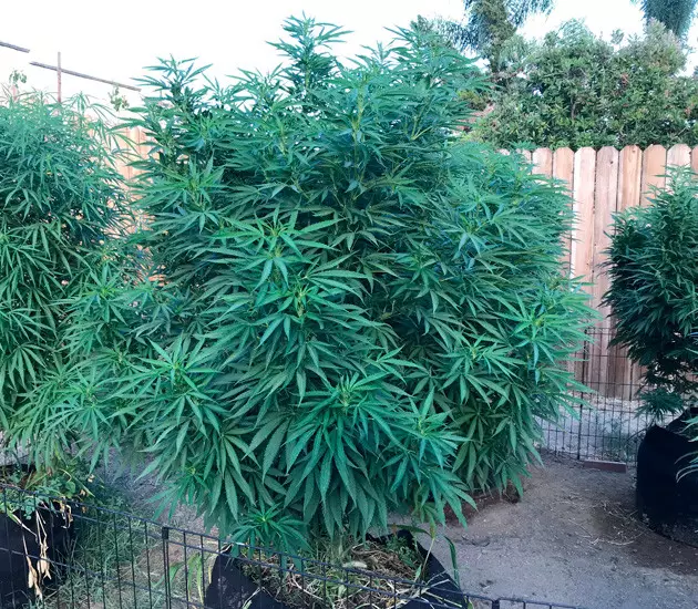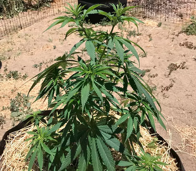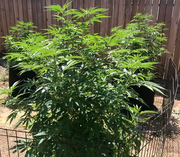 I have a hybrid indoor-outdoor garden. I start my plants in a 0.3 m2 (4 ft2) tent before transplanting into a field behind my house. They begin in a 3.78 l (1 gal) pot for veg. After their root systems develop, I put them in a 170 l (45 gal) pot. They stay there ‘till harvest day.