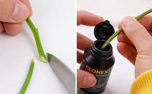 - Dip the surface of the cut in a rooting hormone.