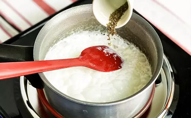 Place your saucepan on medium heat and pour in the whipping cream. Carefully stir in your decarbed cannabis and bring to a boil. Then turn the heat down low and leave to simmer for up to 1.5 hours. Stir regularly.