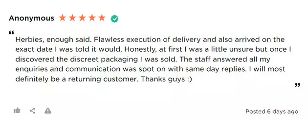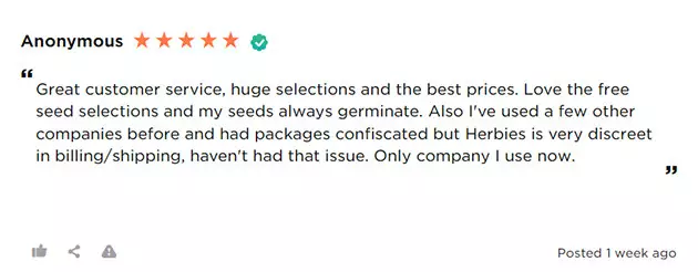 Users on cannabis forums can also testify that Herbies Seeds is a reliable company. They have only good things to say in a “business-as-usual” type of situation. More importantly, they say how helpful our team is when there’re complications at customs or shipping company or some other issue. Our customer support doesn’t stop even if things go wrong through no fault of ours.
