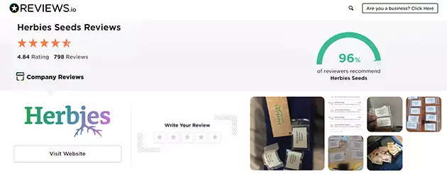 Check out our company’s profile on Reviews.io. Out of 555 users who have left a review, 96 percent would recommend our seed store, and the average rating is 4.82. This is a reliable indicator that Herbies Seeds is a legit source of cannabis seeds, that we deliver on our promises, and do all we can to uphold our reputation.