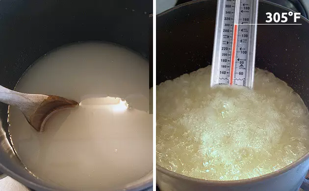 As soon as the temperature has reached 305°F, remove your saucepan from the heat.