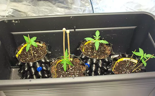 When the seed germinated, I planted it into a 2-liter air pot and for the first two weeks, kept Pineapple Express Auto and a few other Fast Buds strains in my propagation box, which has a CFL light installed into its transparent plastic cover.