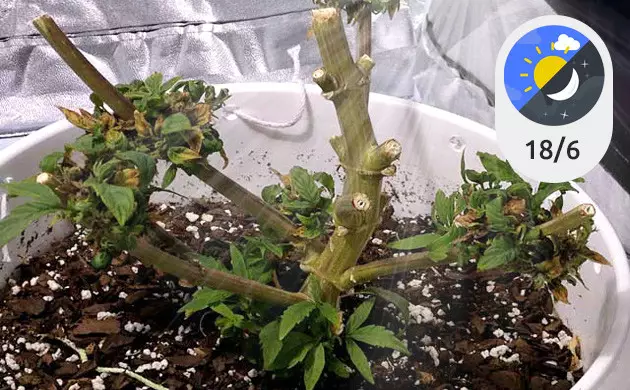 - Reset your plant’s photoperiod for the vegetative schedule, which is 18 hours of light and 6 hours of uninterrupted darkness.