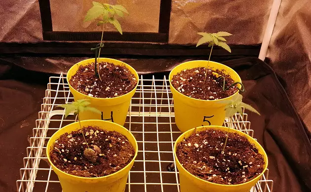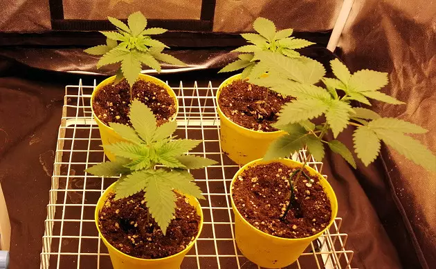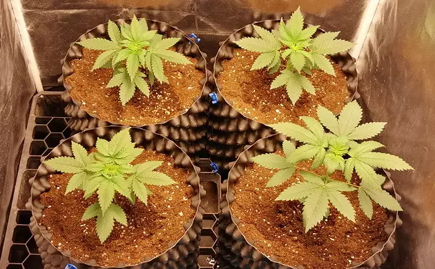 Right out of the gate, my 4 seedlings were vigorous and fast. They varied in size a bit, but had only one phenotype - with broad and roundish, almost pure Indica leaves. They spent their first two weeks in 1L pots with a soil/perlite mix, and, on week 3, I transplanted them into 11.4L (3 gallon) airpots. The re-potting didn’t slow them down, and I even began to think about cutting the top half of the tallest Sugar Candy, but then decided to simply cut the veg short and switch to flowering. Which I did after five weeks from seeds.