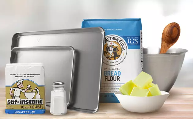 Mix together your flour, yeast, and salt in a large bowl. Create a well – an empty section in the middle – and pour in 200ml of warm water and melted cannabutter. Use a wooden spoon to gradually mix in the flour until you have a soft, wet mass of pliable dough.