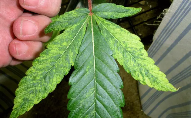 Last but not least are deficiencies with feeding and nutrients that cause similar side-effects to tobacco mosaic virus weed symptoms. When your cannabis plant isn’t receiving an ample amount of nutrients, new growth can be thick like TMV-infected leaves, and twisted or warped as well. Weakening stems will occur, and leaves will start showing yellow tips or random brown spots.