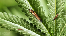Thrips are minuscule insects that infest cannabis crops. They survive by infesting plants and sucking the life out of leaves. These insects are extremely small, between 0.9 and 1.2 millimeters in length, and usually yellowish or brown in color. Depending on the subspecies, thrips can be winged or look like tiny worms. The worst part about thrips is that they thrive in warm environments, and are therefore a danger to any kind of outdoor growing.