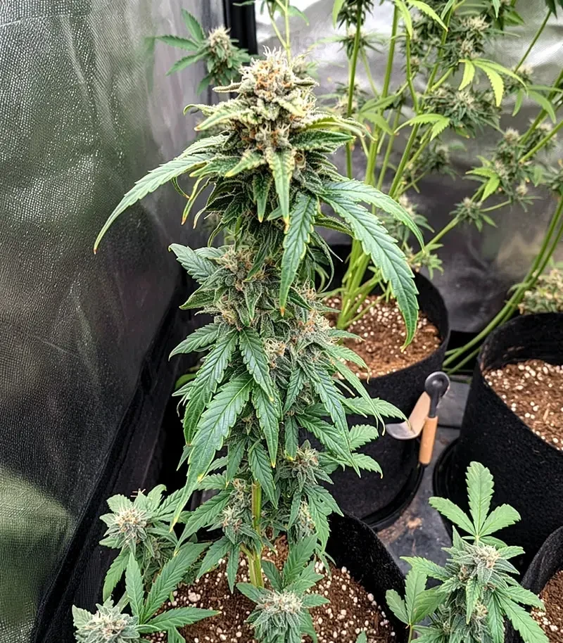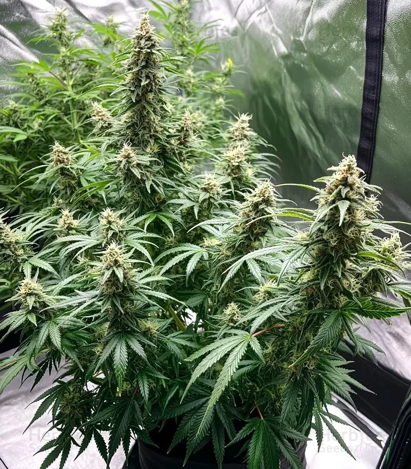 Indoors, yields reach around 1.3-1.6oz/ft² (400-500g/m²) under consistent lighting. Outdoors, plants produce about 5.3oz (150g) per plant when given enough sun and space. The combination of side branching and solid bud density makes the plant productive without becoming difficult to manage.