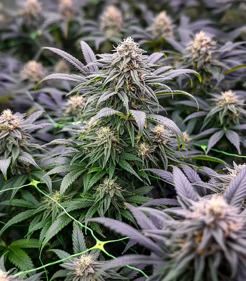 Black Cherry Punch is best suited for growers with some experience, as it responds strongly to environmental tuning. The dense buds and heavy resin production require attention during flowering. The strain forms stocky plants with dark green foliage and buds that appear almost bluish due to their thick resin coating. As flowering progresses, the flowers swell into heavy, compact clusters that can stress the branches if left unsupported. Cooler nighttime temperatures may deepen the purple tones in the buds, enhancing bag appeal. Because the flowers grow so dense, steady airflow and humidity control are essential in the final weeks.
