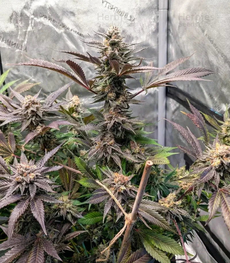 Blue Dream is considered beginner-friendly indoors, where conditions are easier to control. Outdoors, it prefers stable climates and attentive care during flowering. It grows into tall, open plants with strong lateral branching and flexible stems that respond well to shaping. The buds stack along the branches in long, continuous colas, combining airy Haze traits with a denser Blueberry finish. As resin production ramps up, the flowers gain weight evenly across the plant, reducing the risk of snap-prone branches. Managing height early allows the plant to fully express its yield potential indoors.