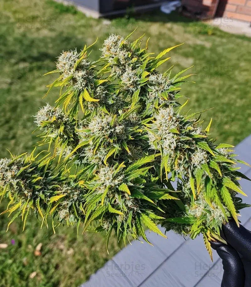 Indoors, growers can expect around 1oz/ft² (300g/m²) under stable lighting. Outdoors, plants produce approximately 11oz (300g) per plant when grown in warm, well-lit conditions. While the yields are moderate, they arrive quickly and with minimal fuss.