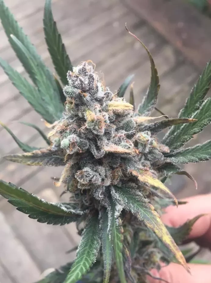 Pulled a nice harvest but outdoors it took forever to start flowering. From May till late October early November it just stood there like a huge tree over 2 meters tall. I ended up chopping it with snow on the ground, maybe that made it extra hardcore lol.