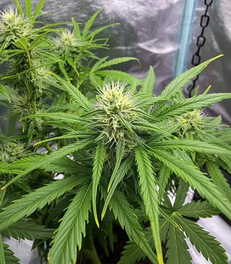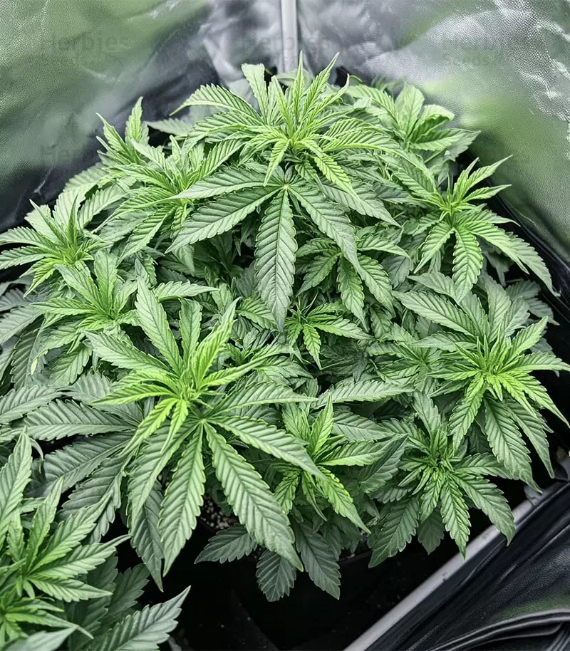 GMO Auto grows with determination and balance, reaching 3-3.6ft (90-110cm) indoors and up to 3.3-4.2ft (100-130cm) outdoors. It adapts well to different environments and doesn’t require complex maintenance.