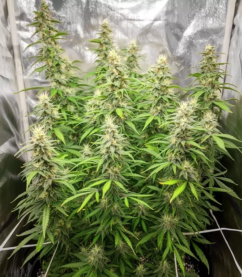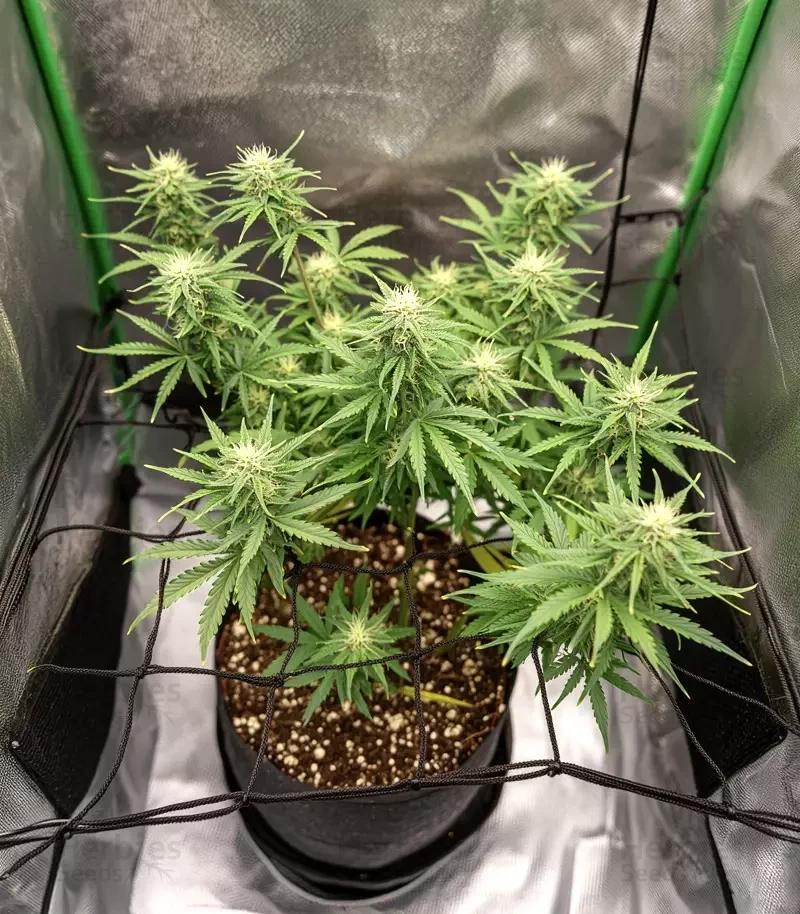 Indoors, growers can expect around 1.6-1.9oz/ft² (500-600g/m²). Outdoors, each plant typically produces 8-10oz (230-300g). The buds form thick clusters that shine with resin, and the branches are strong enough to carry their weight without much support.