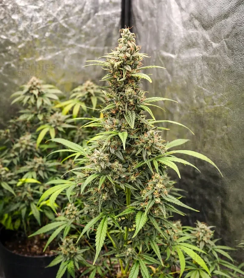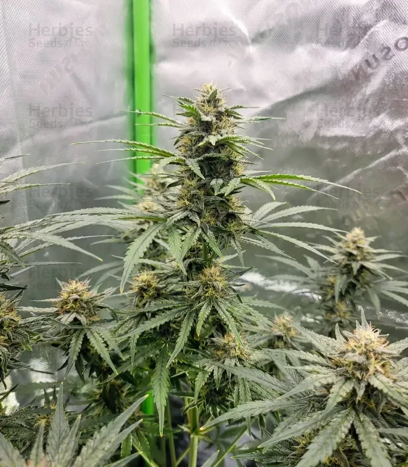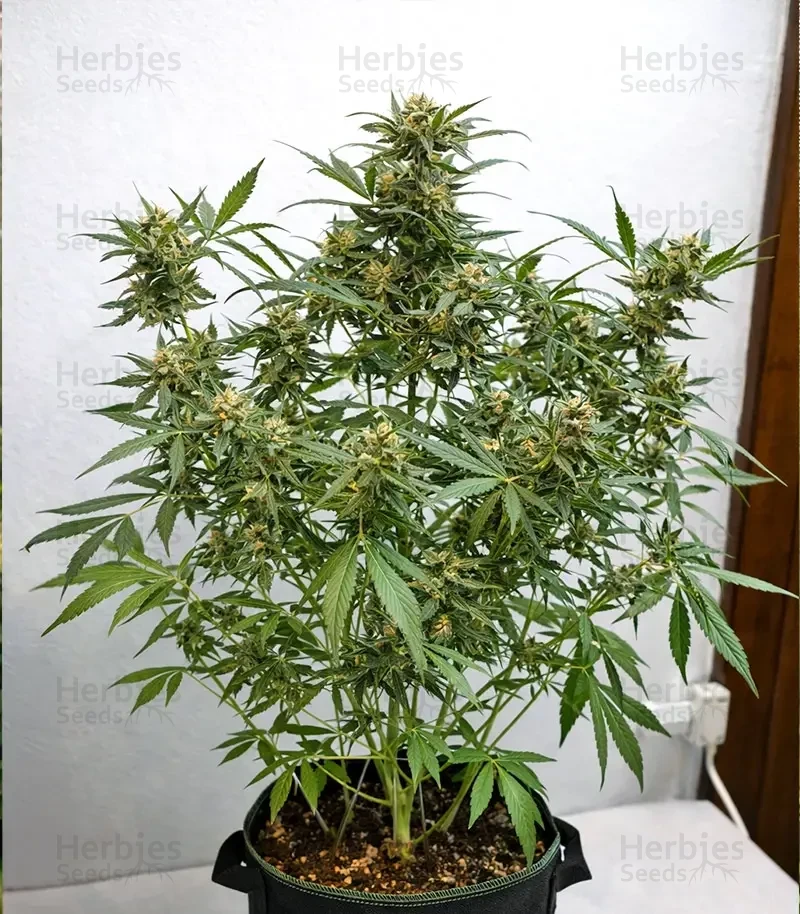 Indoors, yields can reach around 1.6oz/ft² (500g/m²) when grown under stable conditions. Outdoors, plants typically produce 2.8-3.5oz (80-100g) per plant. The plant favors consistency and quality over extreme swings in output.