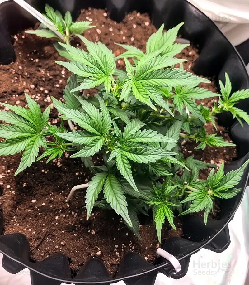 Ice Cream Cake Auto grows into medium-height, stocky plants with strong lateral development and a surprisingly expansive root system for an autoflower. The foliage stays vibrant green through most of the cycle, while the buds mature into dense, resin-rich flowers that may show hints of purple and amber near harvest. Despite its compact stature, the plant fills its space easily, especially below the soil line, so adequate spacing and container size help it reach full potential.
