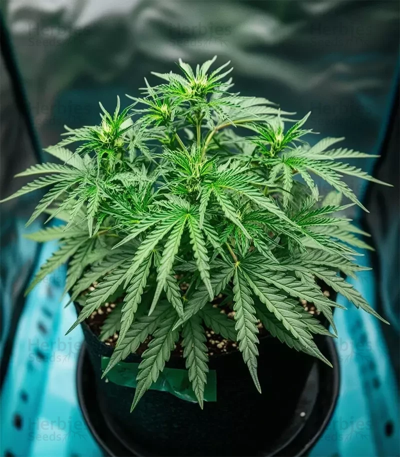 Indoors, yields reach about 1.5-1.8oz/ft² (450-550g/m²), while outdoor plants provide around 6-9oz (180-250g) each. Despite its moderate size, this strain delivers impressive results when given steady light and consistent feeding.