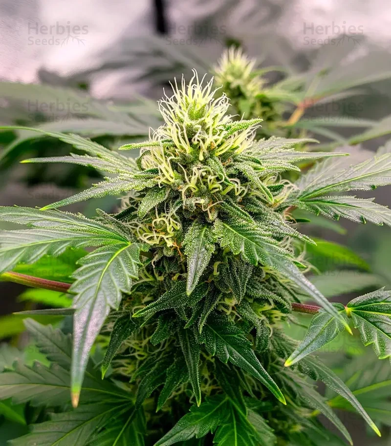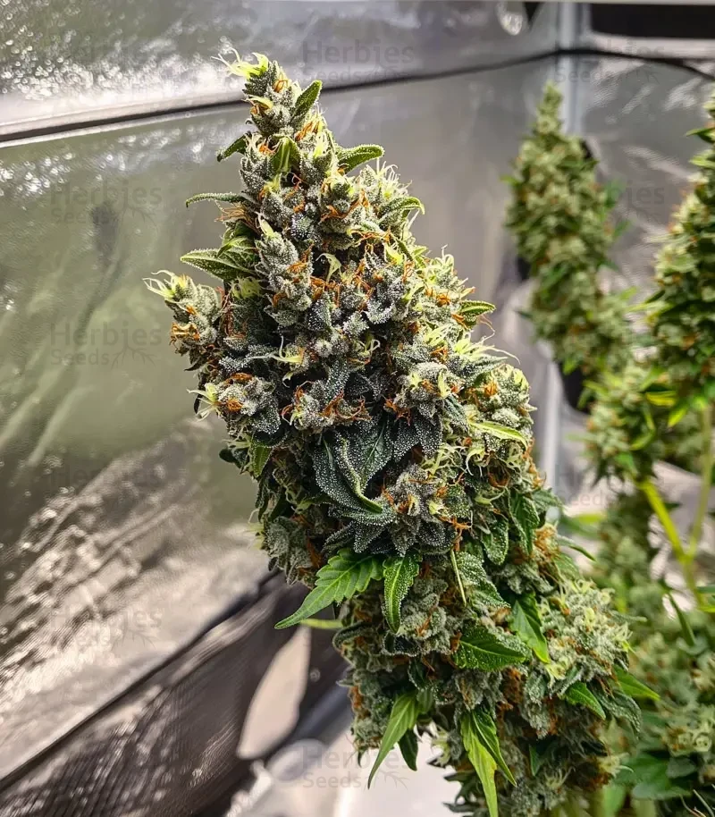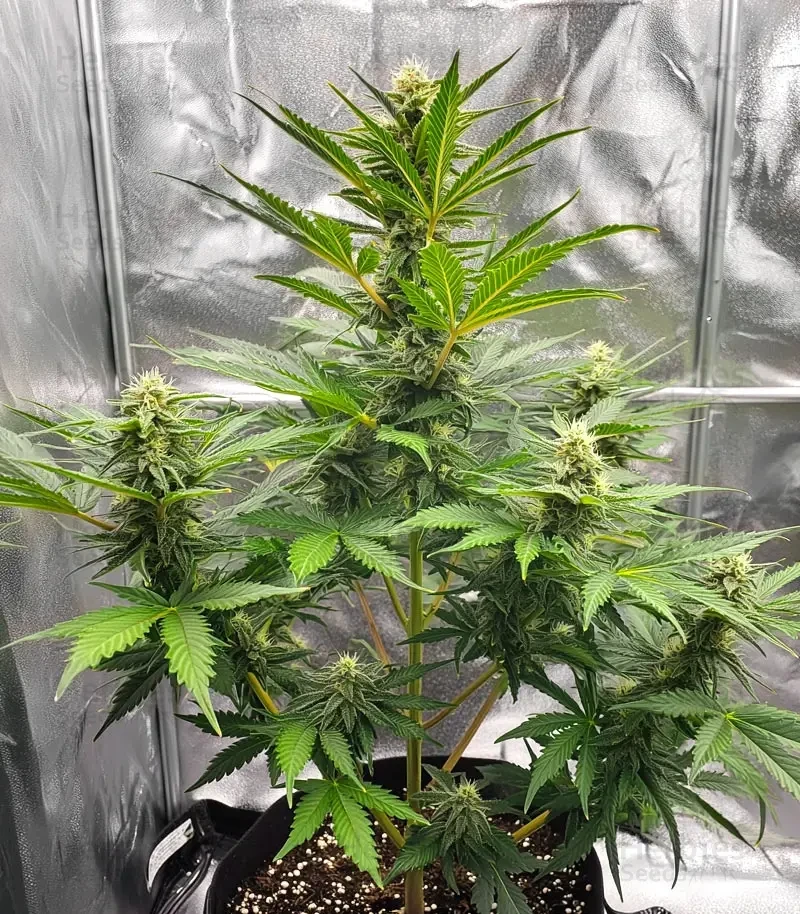 The average cycle runs 11 weeks indoors, with outdoor grows taking roughly 12-15 weeks depending on climate and day-night temperature swings. Plants stretch noticeably around weeks four and five before shifting energy into bud formation. By week nine, the flowers look fully coated in crystal, and the aroma deepens as the final weeks approach. For best results, keep humidity steady and avoid drastic temperature drops.
