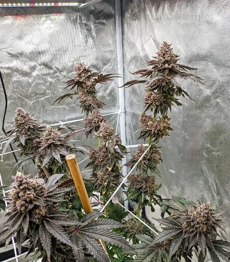 Most plants finish in 11-12 weeks from seed, thriving under 18/6 or 20/4 lighting. They maintain a tight structure early on, then stack quickly as flowering progresses. Cooler nights can nudge purple shades into the flowers – a detail that gives the final harvest a stylish, almost handcrafted look.