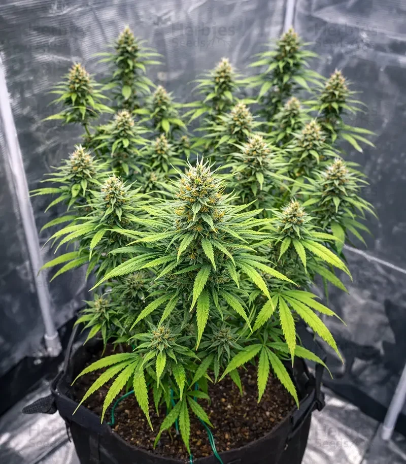 Indoor growers can expect yields of approximately 1.3-1.6oz/ft² (400-500g/m²) under stable conditions. Outdoors, plants produce around 17.6-21.2oz (500-600g) per plant when given space and consistent care. These results reflect the strain’s solid structure and responsiveness to attentive cultivation.