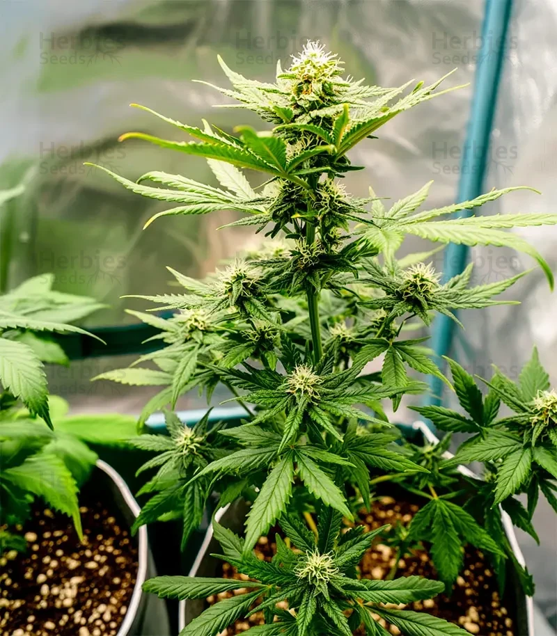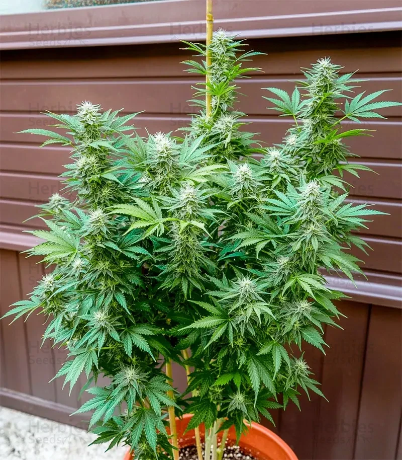 Indoors, growers can expect 1.5-1.6oz/ft² (450-500g/m²) under well-managed conditions. Outdoors, plants produce around 19oz (550g) per plant in mild climates. The dense flower structure and solid branching help support these yields without excessive intervention.