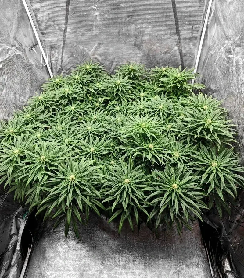 - A ScrOG setup helps create an even canopy, increasing the size of lower buds and maximizing light exposure.