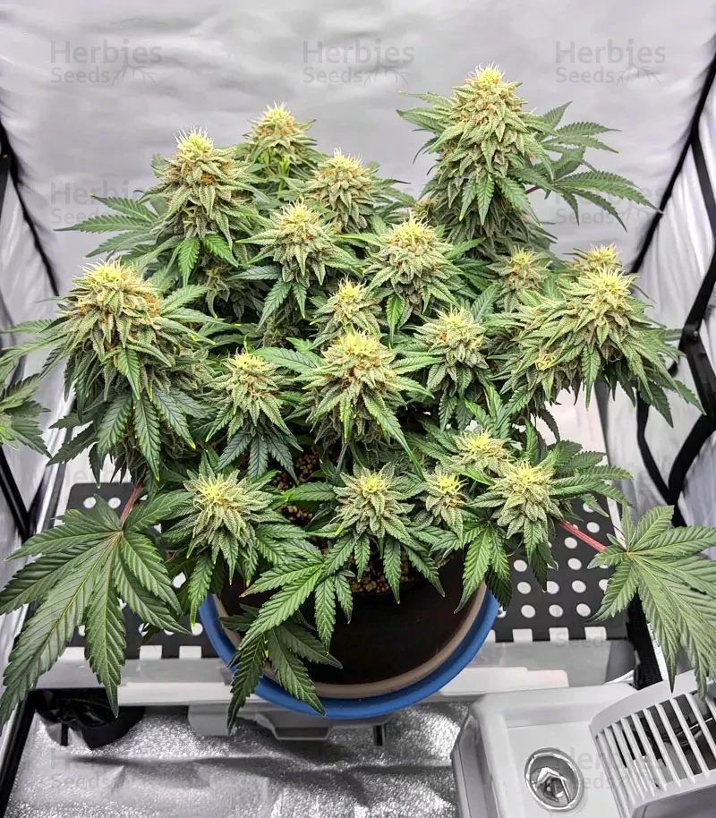 Indoors, growers can expect around 1.8oz/ft² (550g/m²) under strong light and stable feeding. Outdoors, plants can deliver up to 3.3lb (1.5kg) per plant with proper care. Its strong structural base supports weighty buds, while consistent vegetative growth makes training intuitive even for intermediate growers.