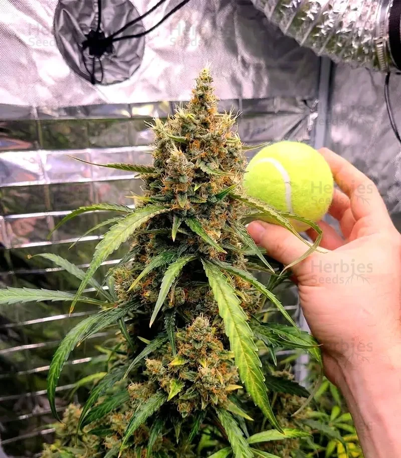 Indoor growers can expect 0.6-1.3oz/ft² (200-400g/m²) depending on conditions. Outdoors, plants return 7-14oz (200-400g) per plant, offering respectable results for an autoflower with dense bud structure.