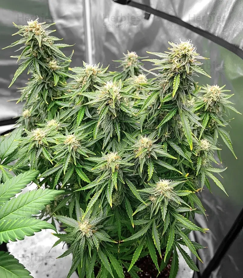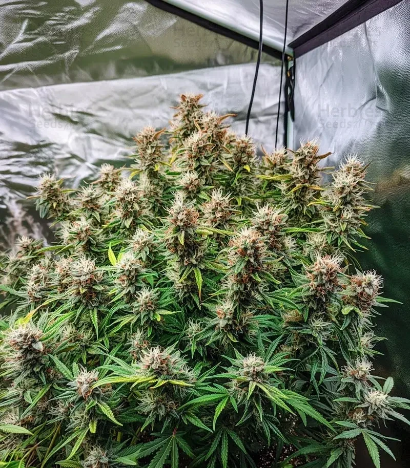 Indoors, expect 1.5-1.8oz/ft² (450-550g/m²) under stable lighting and moderate feeding. Outdoors, plants can return 6.3-8.8oz (180-250g) per plant in warm conditions. Its compact stature, mold resistance, and quick lifecycle make it ideal for growers in variable or challenging climates.