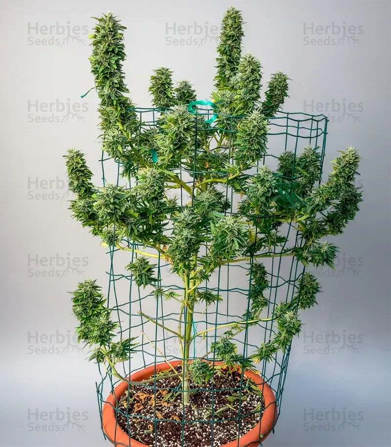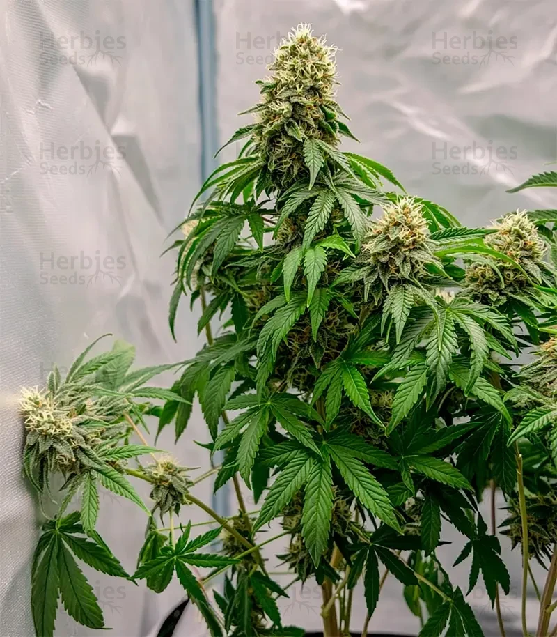 Indoor growers can expect 1.9-2oz/ft² (600g/m²) under solid conditions, especially when training is applied early. Outdoors, well-developed plants are capable of producing up to 25oz (700g) per plant, particularly when given space and structural support to manage their vertical growth.