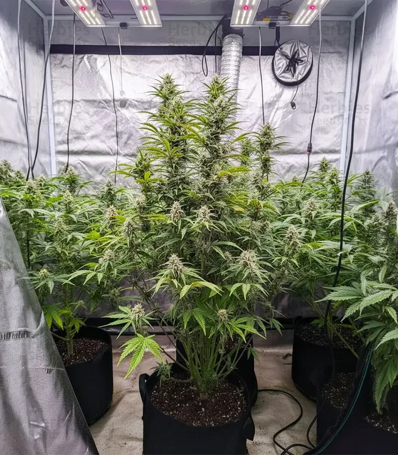 Indoors, expect 1.5-2oz/ft² (450-600g/m²) under consistent lighting. Outdoors, plants deliver 3-11oz (60-300g) depending on climate and root volume. The XL structure fills out evenly, producing uniform bud sites with minimal effort.