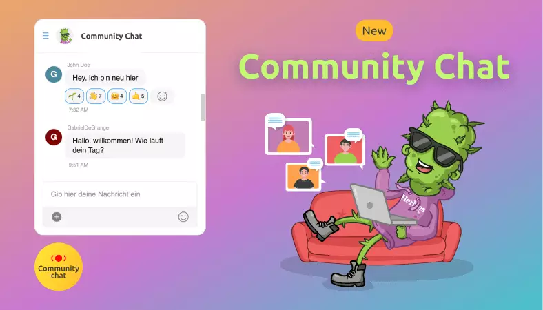 Durch einen einfachen Klick auf das Widget in der linken unteren Ecke kannst du dich mit anderen austauschen, Ratschläge geben und dein Wissen erweitern. Egal, ob du über verschiedene Sorten diskutieren, Tipps zur Ertragssteigerung entdecken oder dich einfach nur mit Gleichgesinnten austauschen möchtest – hier bist du genau richtig. Außerdem veröffentlichen wir im Chat exklusive Promo-Codes und veranstalten spannende Wettbewerbe, also halte die Augen offen!