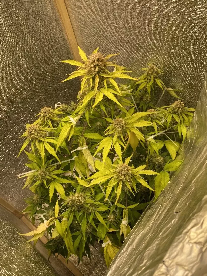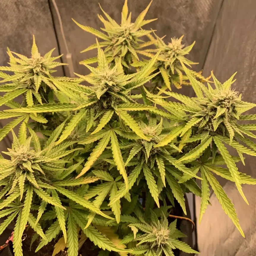 Esta variedad me sorprendió gratamente; obtuve un fenotipo índica genial. La primera semilla no brotó, pero el equipo de soporte lo gestionó rápidamente y me envió una de reemplazo, muchas gracias por eso. Cualquiera que fume cogollos por primera vez se va a quedar pálido de una calada, no es broma. Mi amigo quería fumar rápido e ir a su ceremonia de graduación, dio una calada y no se fue a ninguna parte... se perdió todo, el tío estaba frito. Cultivé un bonito arbolito bajo una luz LED doméstica normal, en una maceta de unos 11 litros con tierra comprada y fertilizantes básicos de cultivo. En general, todo salió bien.