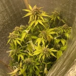 Esta variedad pega como un camión. La corté alrededor del día 50 y probé un pequeño cogollo popcorn, e incluso con mi buena tolerancia al hachís, me dejó sin aliento y me dejó pálido en el sofá durante una buena hora. El efecto se prolongó durante más de dos horas, una hierba realmente fuerte. Los cogollos salieron como churros. La planta entera me dio más o menos lo que esperarías de una autofloreciente decente, unos 40 gramos en seco, pero los cogollos eran del tamaño de pelotas de tenis y se veían geniales. También crece rápido, prácticamente justo en el momento del criador o incluso más rápido si le aplicas mucha luz. El olor, sin embargo, es otra cosa. Tengo un armario espacioso con filtro de carbón y, una vez que florece, todavía tengo que airear el lugar constantemente. Tengo una gorila sentada justo al lado y esa cosa apenas huele a menos que la tengas cerca. Esta es otra historia. No cultives si tienes vecinos curiosos.