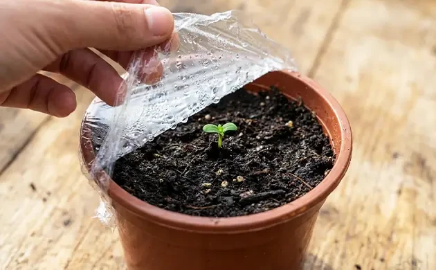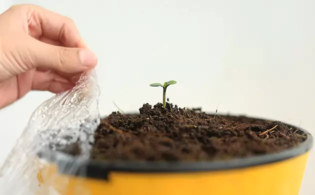 Une fois que les pousses émergent, retirez le film plastique, gobelet, ou dôme pour permettre aux jeunes plants de bénéficier d’un bon renouvellement d’air.